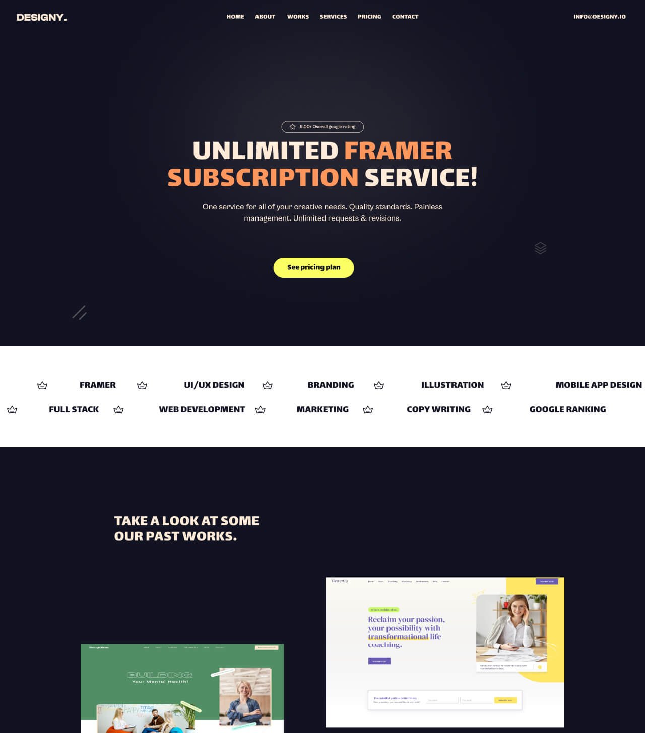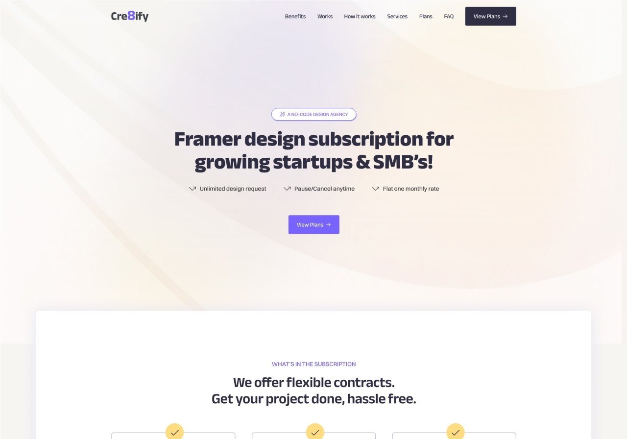 Marketing landing page website for a framer subscription service