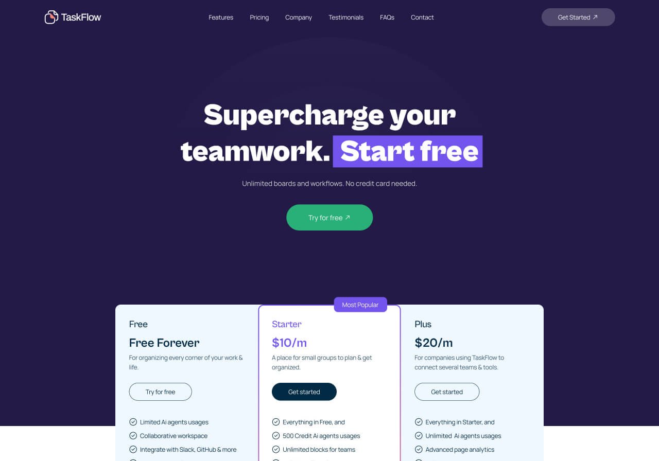 Saas marketing landing page design for AI powered project managent tool.